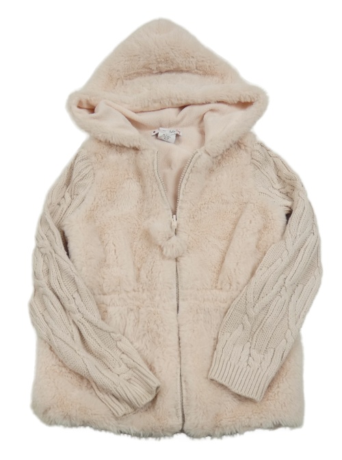 Světlerůžová chlupatá podšitá propínací mikina s pletenými rukávy a kapucí