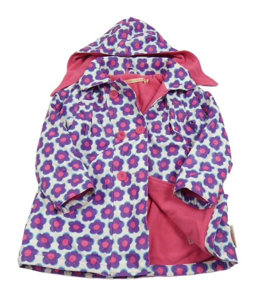 Bílo-fialovo-růžová květovaná podzimní nepromokavá bunda s kapucí