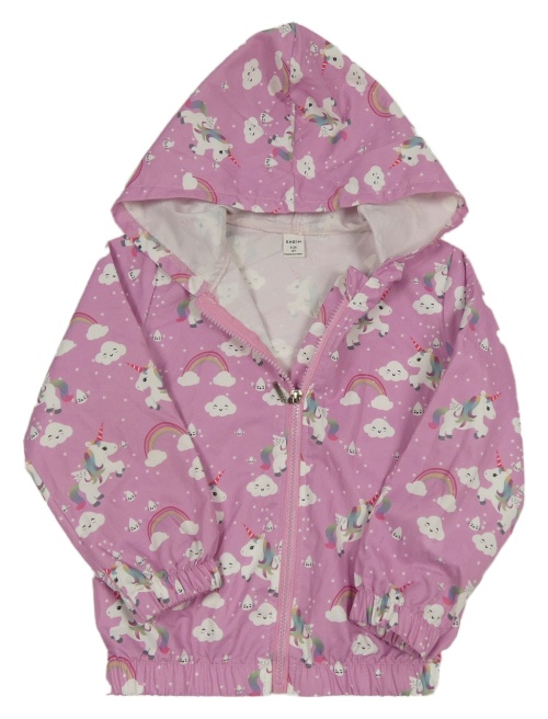 Růžová šusťáková bunda s jednorožci a kapucí Shein