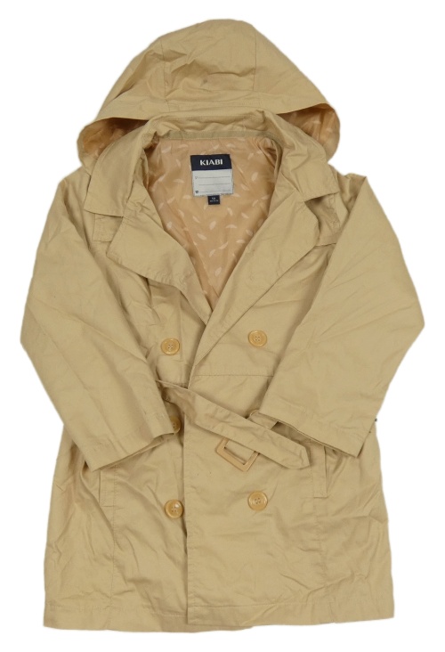 Béžový plátěný jarní kabát s páskem a kapucí Kiabi