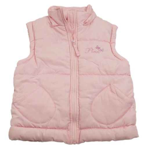 Růžová šusťáková zateplená vesta s nápisem Topolino
