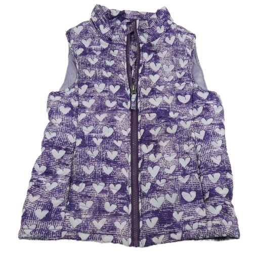 Purpuruovo-lila prošívaná šusťáková zateplená vesta se srdíčky a nápisy LANDS'END
