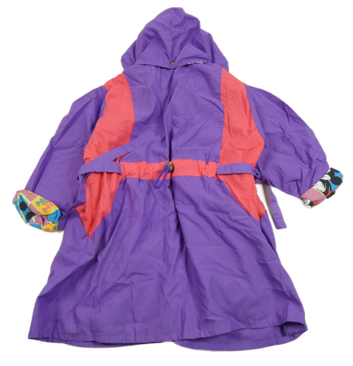 Fialovo-jahodová plátěná jarní parka se psem a kapucí