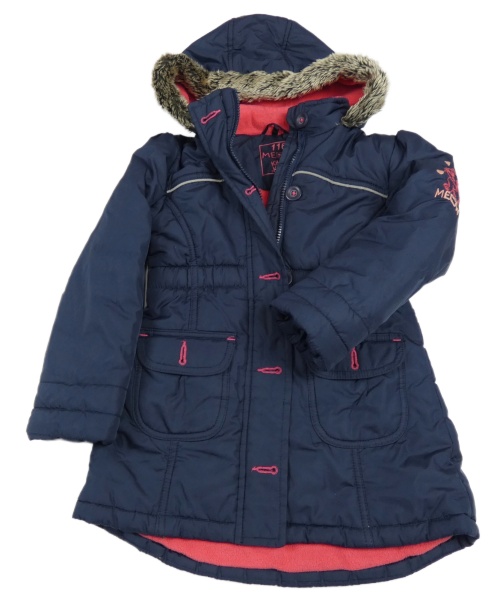 Tmavomodrý šusťákový zimní kabát s kapucí s kožešinou Kiki&Koko