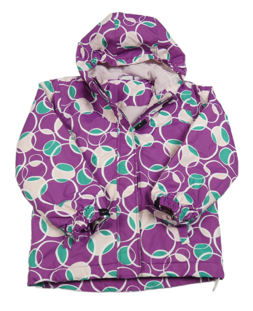 Fialová puntíkatá šusťáková lyžařská bunda s kapucí