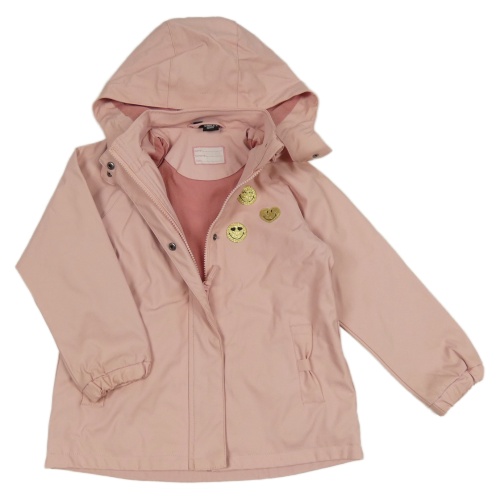 Světlerůžová nepromokavá jarní bunda se smajlíky a kapucí