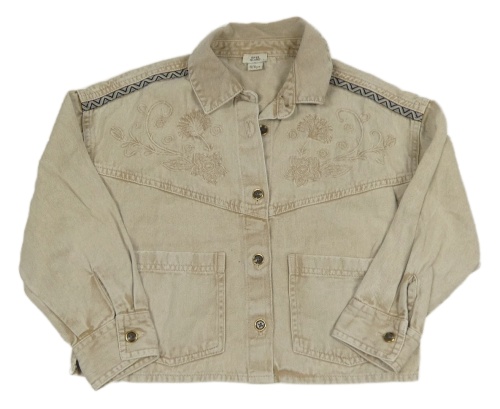 Světlebéžová crop riflová bunda s výšivkou River Island