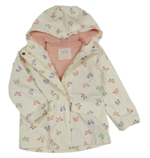 Smetanová nepromokavá jarní bunda s motýly a kapucí Topolino