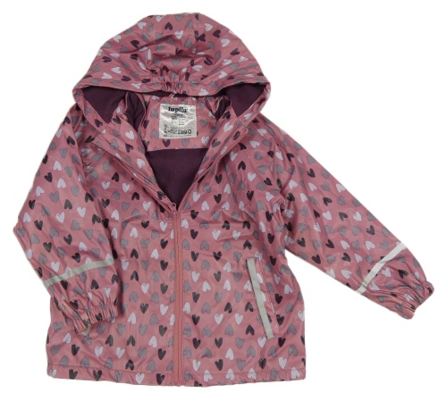 Růžová nepromokavá jarní bunda se srdíčky a kapucí Lupilu