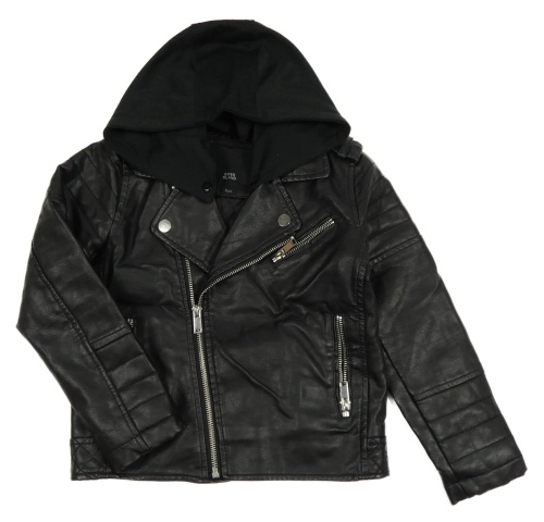 Černý koženkový jarní křivák s odepínací kapucí River Island