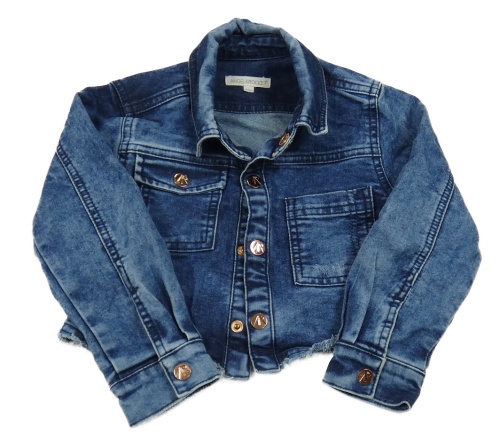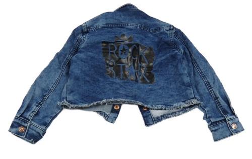 Tmavomodrá riflová tepláková crop bunda s nápisem