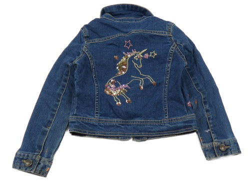 Tmavomodrá riflová crop bunda s hvězdami a jednorožcem Monsoon