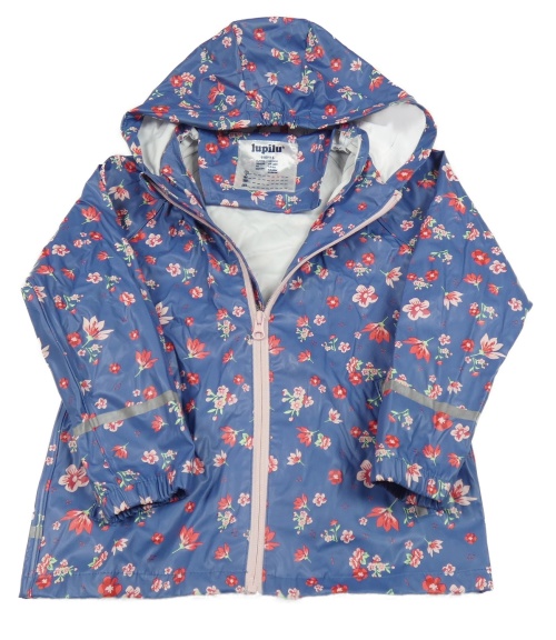 Modrá nepromokavá bunda s kytičkami a kapucí Lupilu