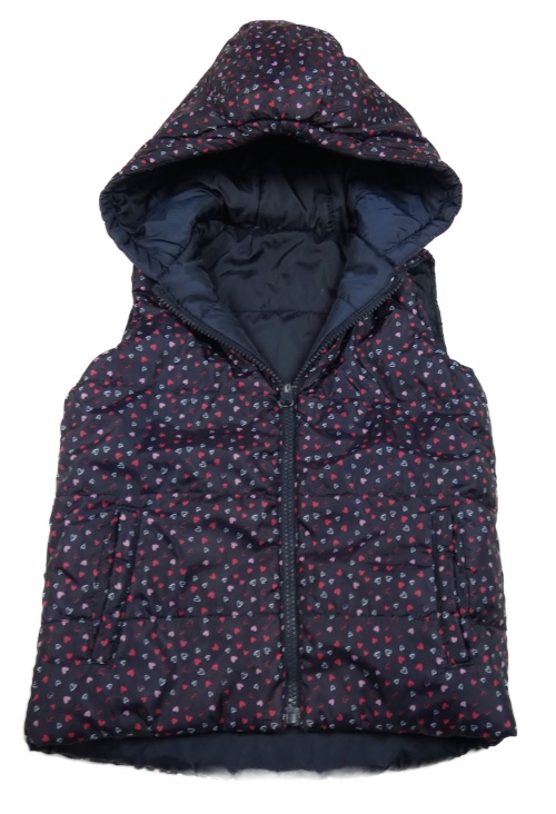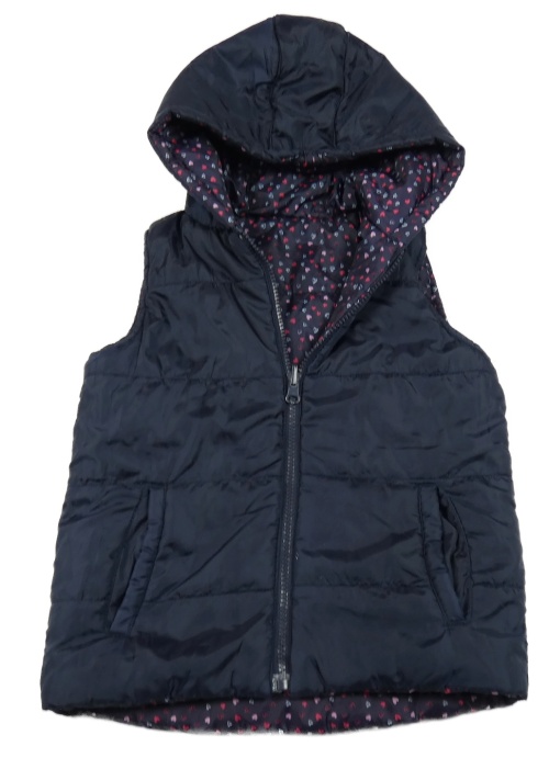 Tmavomodrá šusťáková zateplená oboustranná vesta s kapucí Topolino
