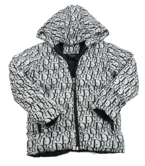 Bílá šusťáková zimní bunda s nápisy a kapucí Dior