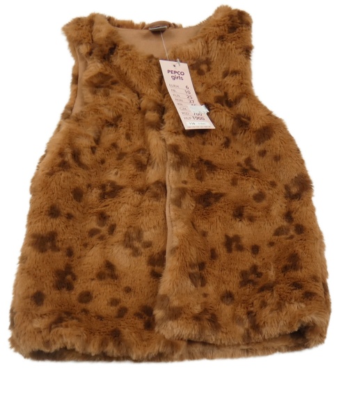 Nové - hnědo-tmavohnědá vzorovaná kožešinová podšitá vesta little kids