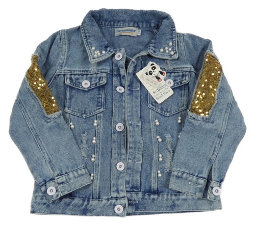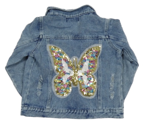 Nové - Světlemodrá riflová bunda s perlami a flitry a motýlkem