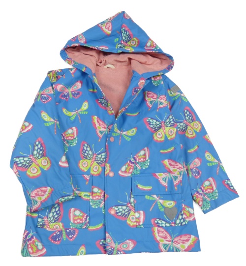 Modrá nepromokavá lehce zateplená bunda s motýly a kapucí Hatley