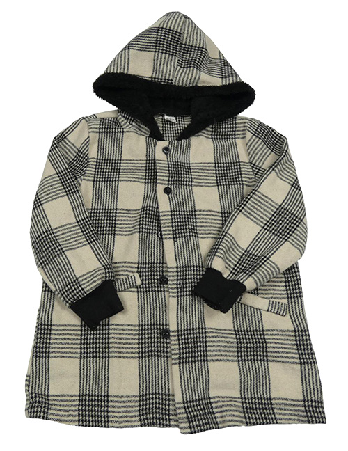 Béžovo-černý kostkovaný kabát s kapucí Shein