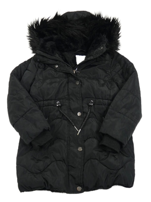 Černá prošívaná šusťáková zimní parka s kapucí s kožešinou Next