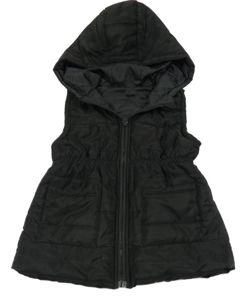 Černá prošívaná šusťáková zateplená vesta s kapucí SHEIN