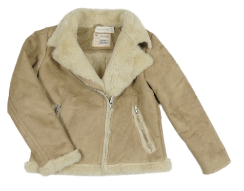 Světlehnědý semišový zateplený křivák s kožešinou a límečkem