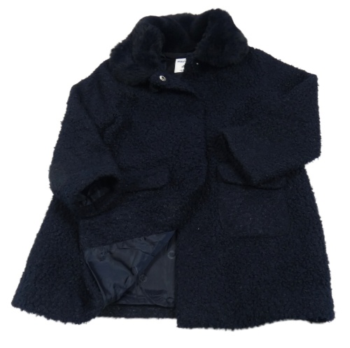 Tmavomodrý huňatý podšitý kabát s kožešinou Mayoral