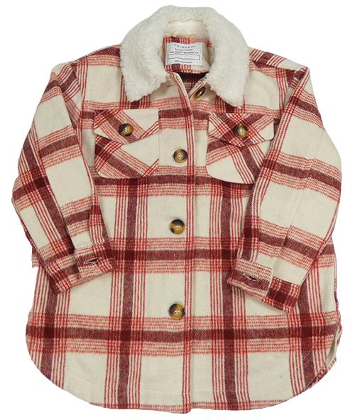 Smetanovo-vínovo-červená kostkovaná vlněná košilová bunda Primark