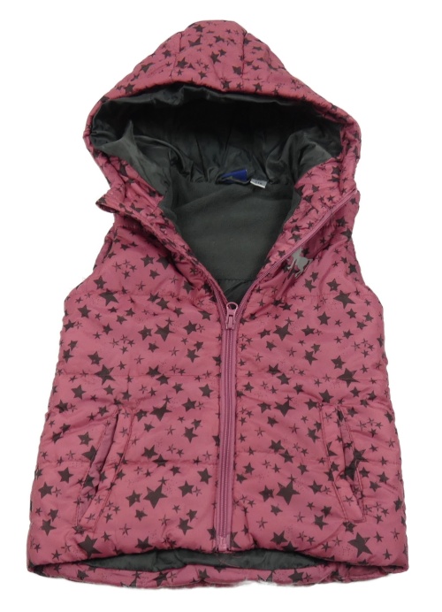 Růžovo-šedá šusťáková zateplená vesta s hvězdami a jednorožcem a kapucí Lupilu