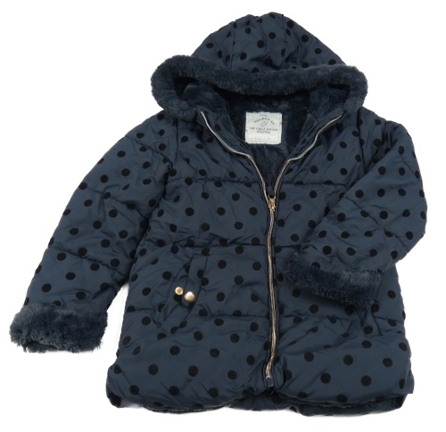 Tmavomodro-černá puntíkatá šusťáková zimní bunda s kapucí s kožešinou George
