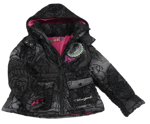 Černošedá vzorovaná zimní bunda s kapucí Desigual