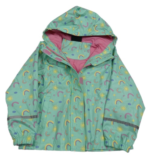 Mátová nepromokavá jarní bunda s duhami a sluníčky a srdíčky a kapucí TESSENTIALS