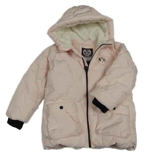 Světlerůžová mačkaná šusťáková zimní bunda s Minnie a kapucí C&A