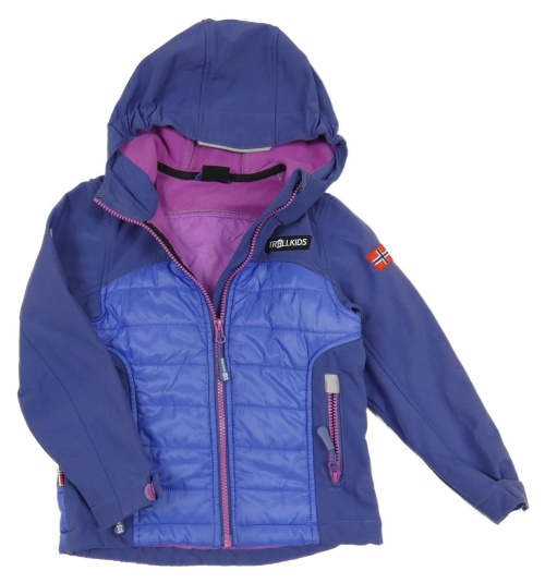 Fialovo-lila šusťákovo/softshellová bunda s kapucí Trollkids