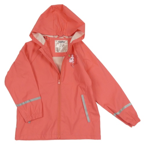 Korálová nepromokavá bunda s jednorožcem a kapucí lupilu