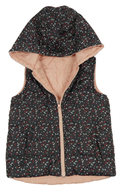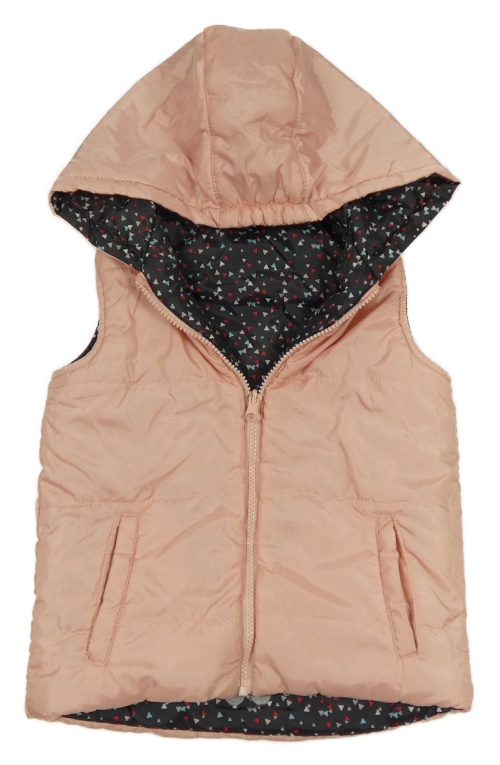 Světlerůžová šusťáková oboustranná zateplená vesta s kapucí Topolino