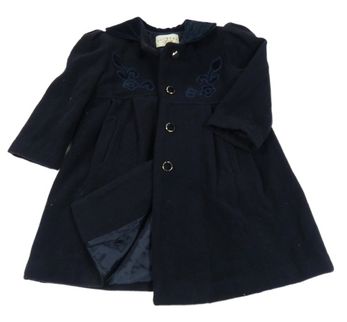 Tmavomodrý flaušový podšitý kabát s květy Flowers