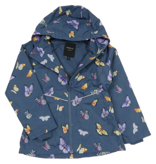 Tmavomodrá šusťáková jarní bunda s motýlky a kapucí Name it