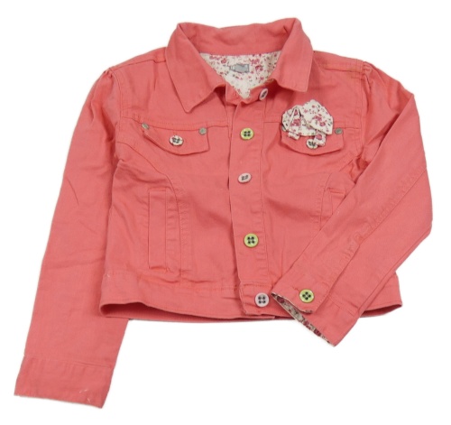 Jahodová tepláková riflová crop bunda s mašlí a límečkem FUNKY DIVA