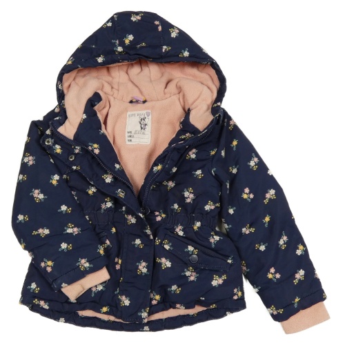 Tmavomodrá květovaná šusťáková zimní parka s kapucí Dopodopo