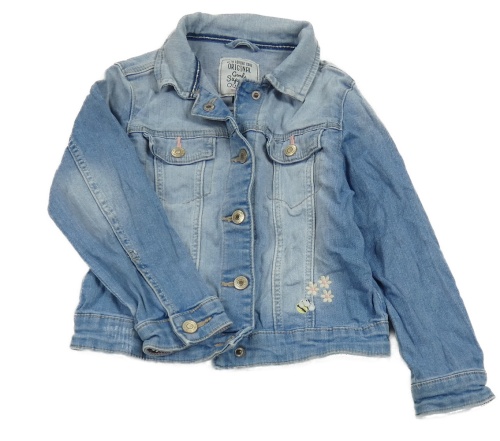 Modrá riflová bunda s výšivkami květin a včelou C&A