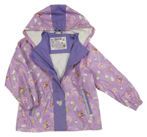 Fialová nepromokavá bunda s obrázky a kapucí Lupilu
