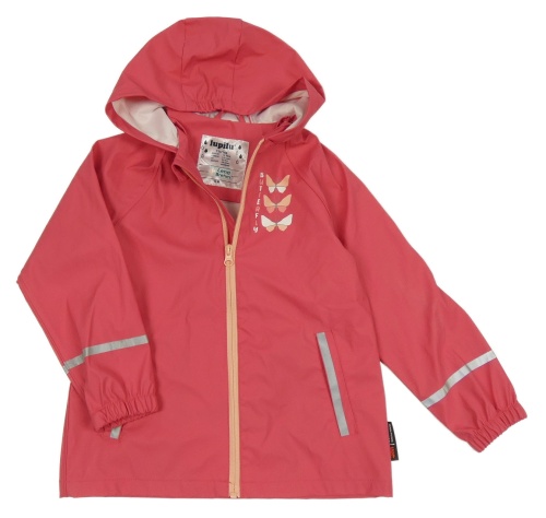 Fuchsiová voděodolná jarní bunda s motýlky a kapucí Lupilu