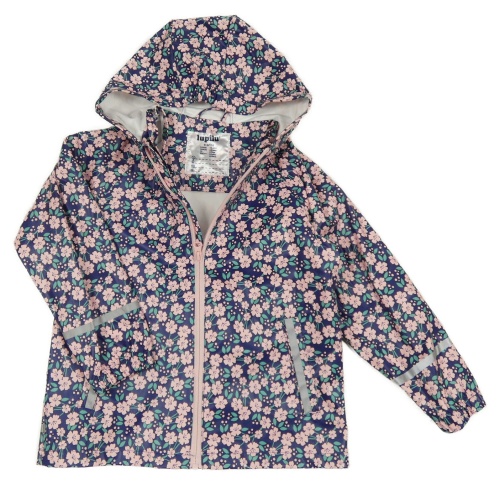 Tmavomodrá květovaná nepromokavá bunda s kapucí Lupilu