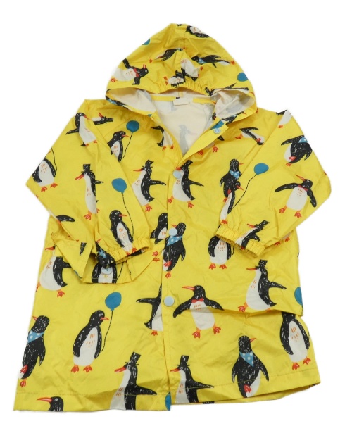 Žlutá šusťáková nepromokavá bunda s tučňáky a kapucí