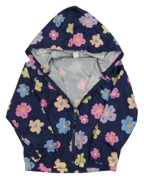 Tmavomodrá květovaná šusťáková nepromokavá bunda s kapucí SHEIN