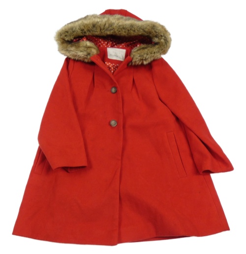 Červený flaušový podšitý kabát s kapucí s kožešinou Mothercare