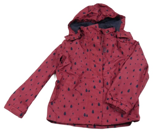Vínová šusťáková jarní bunda s kapkami a kapucí Pocopiano