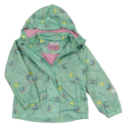 Zelená šusťáková jarní bunda s duhami a kapucí