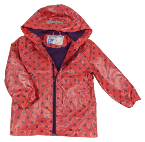 Červená puntíkatá nepromokavá lehce zateplená bunda s kapucí Pocopiano